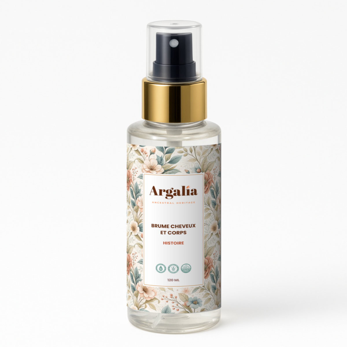 La Brume Corps et Cheveux Argalia aux notes boisées d'Histoire, une fragrance profonde et mystérieuse inspirée des souks marocains enveloppe votre peau et vos cheveux d'un voile parfumé, frais et subtilement scintillant.