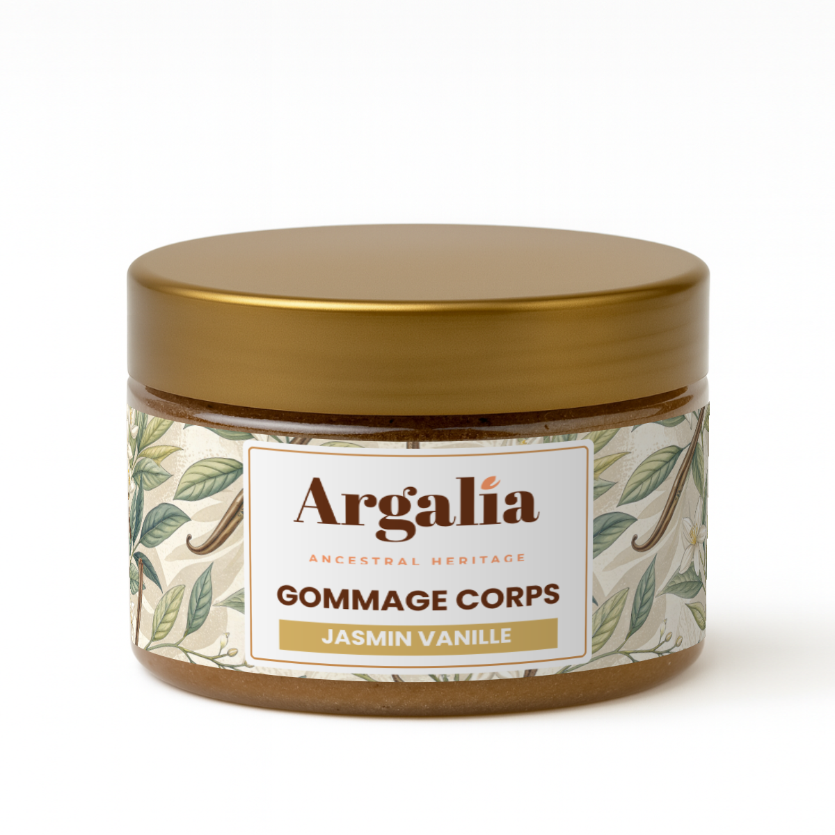 Le Gommage Corps Argalia aux notes enveloppantes de jasmin et vanille, un duo sensuel et réconfortant offre une exfoliation douce et sensorielle pour une peau lisse, lumineuse et parfaitement préparée aux soins.