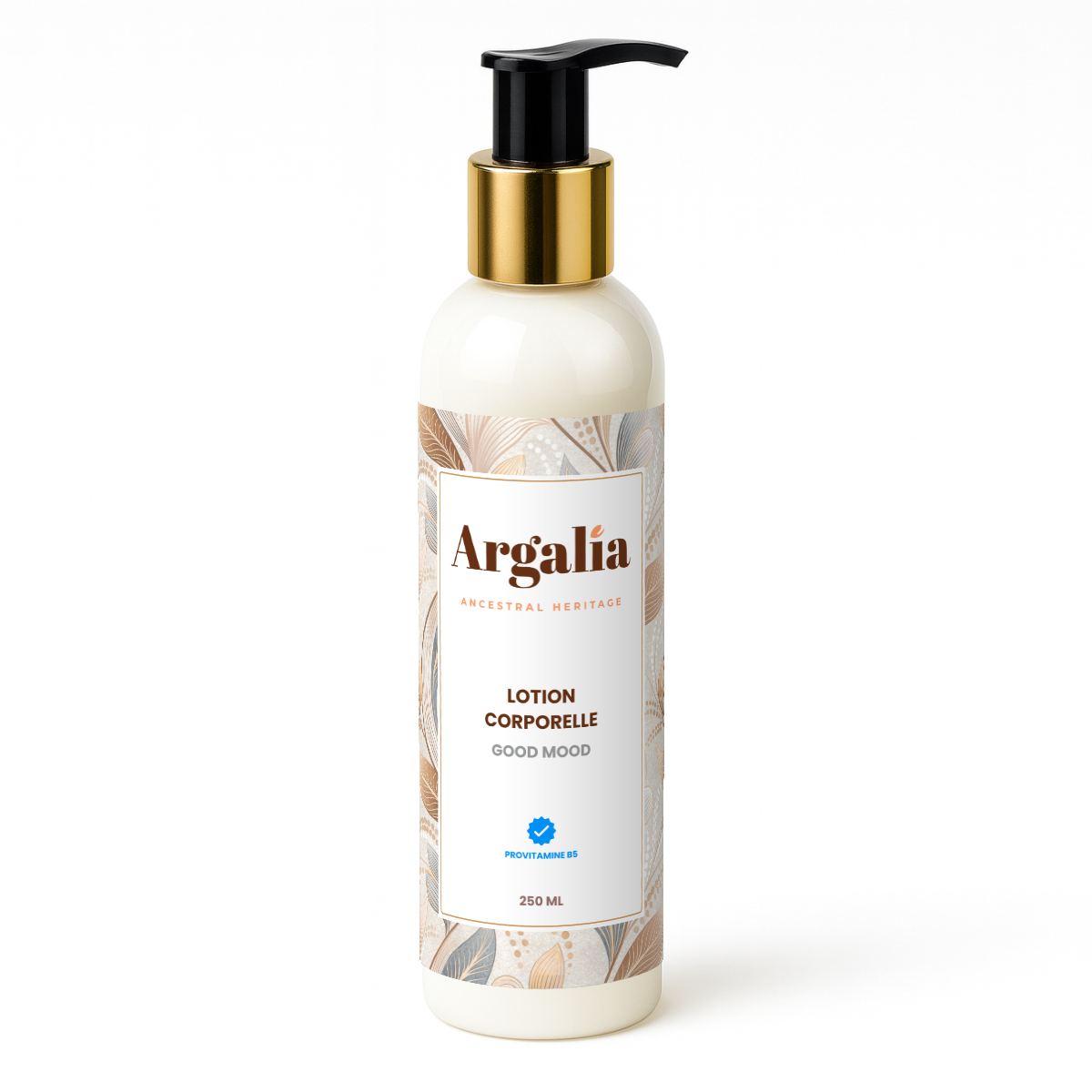 La Lotion Corporelle Argalia aux notes vitaminées Good Mood, un mélange énergisant d'agrumes et de fleurs blanches hydrate et adoucit la peau tout au long de la journée grâce à sa formule légère et pénétrante.
