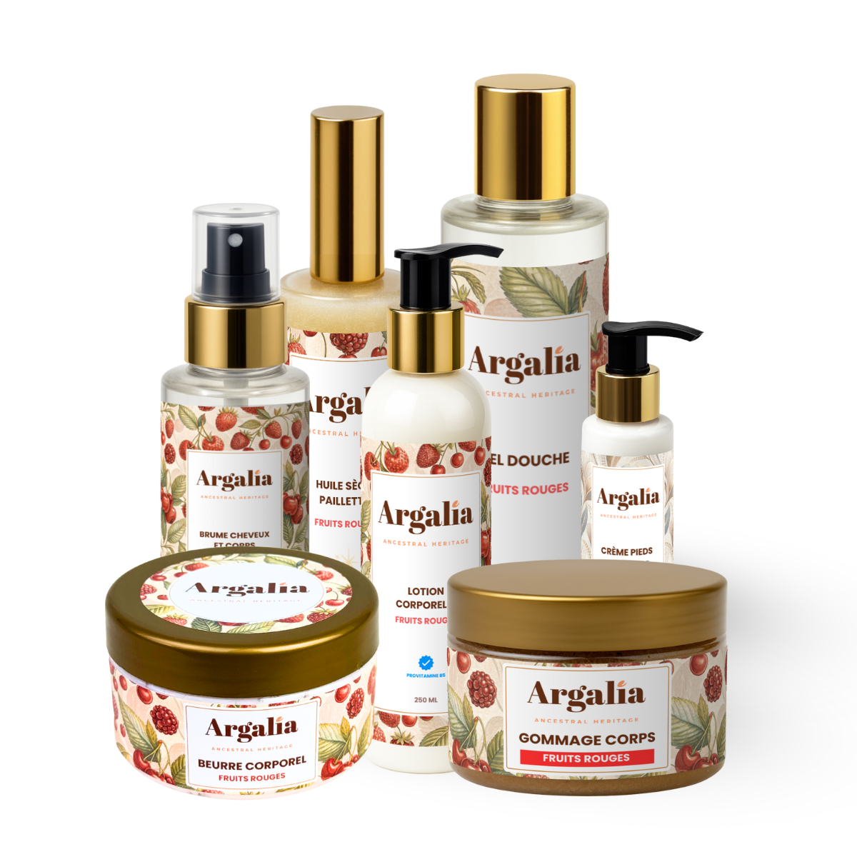 Le Pack Glamour Fruits Rouges Argalia réunit 7 essentiels de soins du corps dans un coffret complet aux notes gourmandes et envoûtantes de fruits rouges. L'expérience sensorielle ultime pour une peau sublimée.