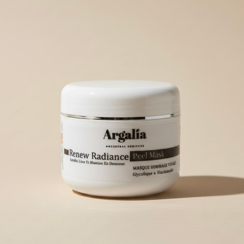 - Masque gommage acide glycolique Argalia : exfolie, illumine et resserre les pores avec niacinamide pour une peau lisse et éclatante.